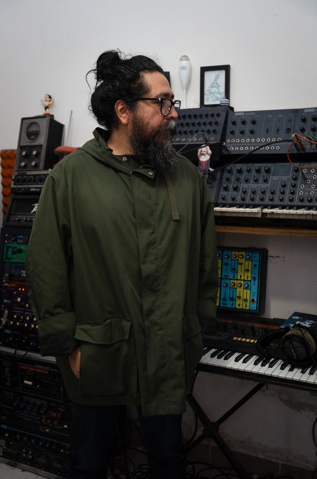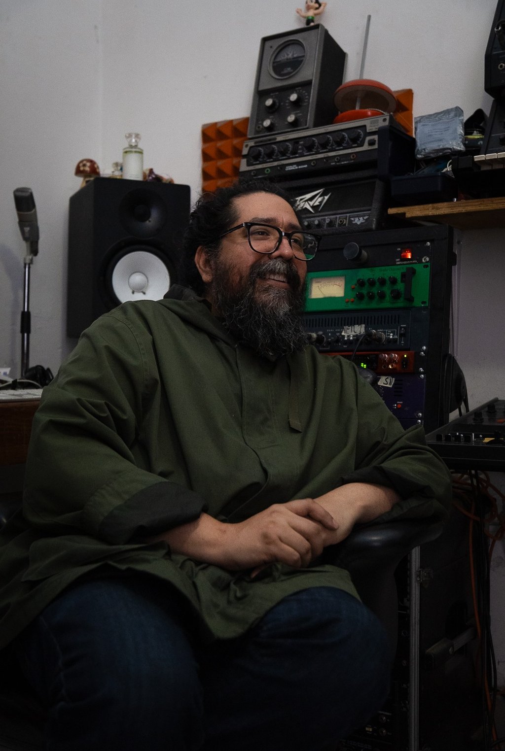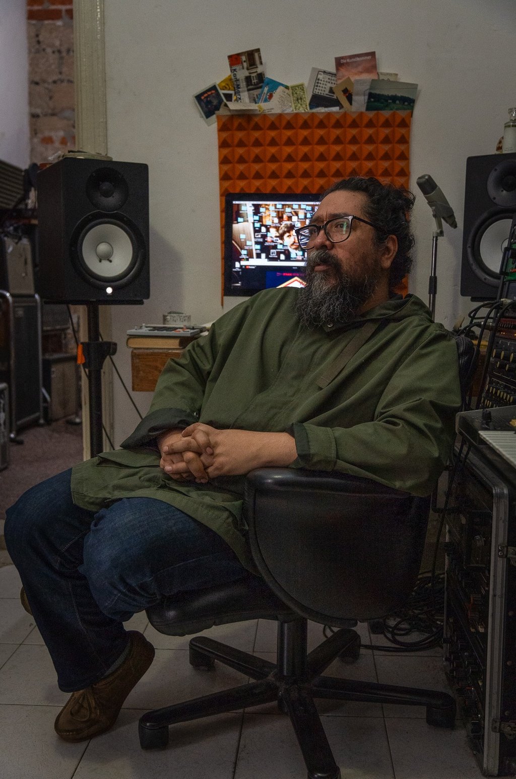 Hay veces que hasta creando un poco de conflicto, pasa. Es que en realidad es muy gracioso, porque por ejemplo con la banda también que tengo con Anika y Martín, que se llama Exploded View, me di cuenta que entre más incómodo estés en el estudio a veces pasan cosas mucho más inesperadas y las sorpresas son mejores. Toda esta idea de que el estudio debe ser un espacio de paz y tranquilidad la verdad es que siempre la he odiado, y aparte pensar que estoy en el mero centro de la ciudad, es como una cloaca que le está saliendo vapor caliente todo el tiempo, entonces como que pensar en la idea de hay que escuchar pajaritos, y hay que perseguir a las hadas no me va, mi approach es mucho más realista. Si hay alguien que llega con un arreglo que está hecho en bajo, pero descubrimos que qué tal que no es un bajo, qué tal que es un sinte, o qué tal que es una percusión, o si ya te tardaste mucho en sacar este beat de batería, pongamos una caja de ritmo y dejemos la idea abierta de que si al rato sentimos que le hace falta la batería se la metemos después. Es sacar a las personas de su zona de confort y tratar de ponerles algo que no manejan.