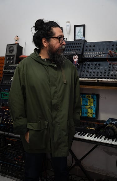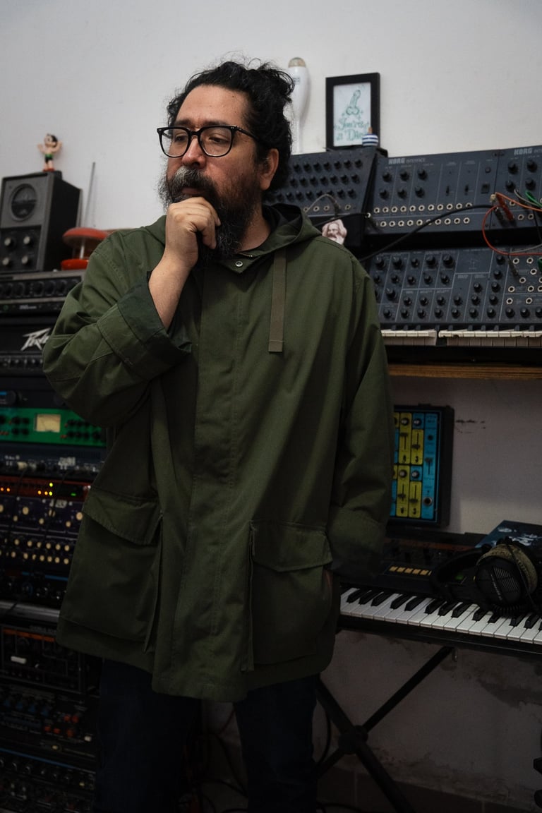Sonidos desafinados. Eso creo que es muy característico de mi sonido, de lo que hago acá, también creo que porque al contrario de todo lo que está pasando en la música allá afuera, que todo ahorita en estos tiempos todo tiene que ser súper pulido, súper en el grid, súper a tiempo, ya hay las herramientas que hay para poder afinar una voz, son ridículas pues. Allá en la IA te puedes meter, avientas un track completamente desafinado y esta cosa te la afina con tendencia. Siempre he estado del lado contrario, mucho de mi sello es completamente cosas que sean incómodas de escuchar.