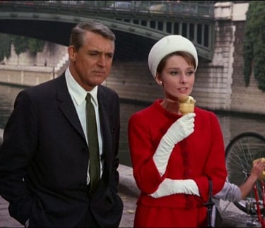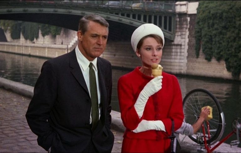 La maravillosa Audrey Hepburn se adueña de la pantalla grande al lado del mítico Cary Grant, donde Hepburn encarna a una reciente viuda acosada por cuatro hombres que buscan una fortuna obtenida a través de un robo durante la segunda guerra mundial, mientras que Cary Grant es un hombre de muchos nombres que le ofrece su ayuda, con intenciones no tan ocultas de por medio. La maravillosa música, el inteligente y divertido guion y las hermosas calles de París se mezclan en esta historia de intriga y misterio, donde las cosas (y las personas) nunca son lo que parecen, resultando, en mi parecer, en una de las películas más icónicas del cine americano.